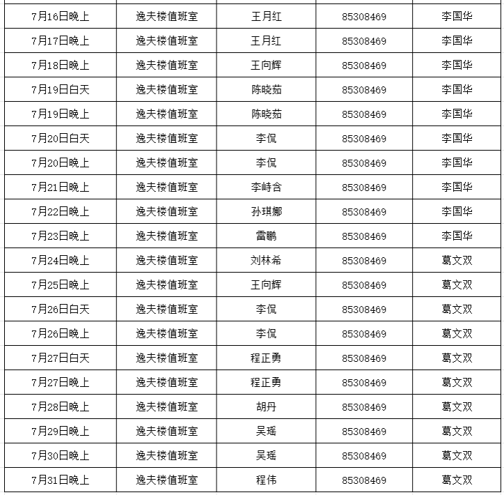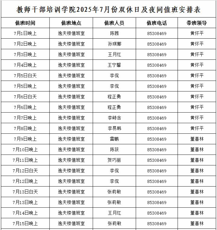 嘀哩嘀哩 2025年7月份双休日及夜间值班安排表